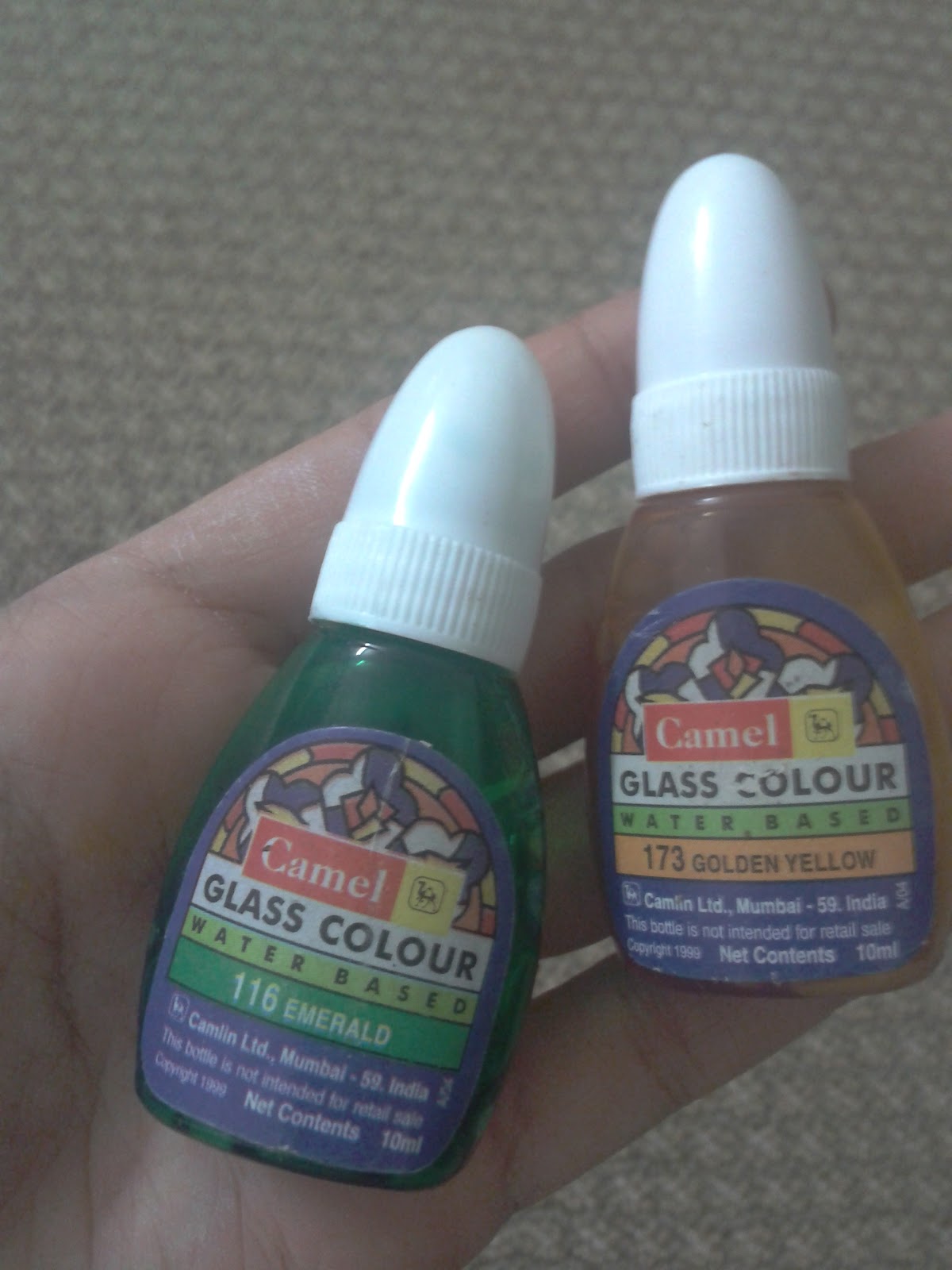 Use any 2 colours. I used green and golden yellow. You can use even more than 2 colours depending on the shape of the bottle.. The bottle i had was kind of trapezoidal.